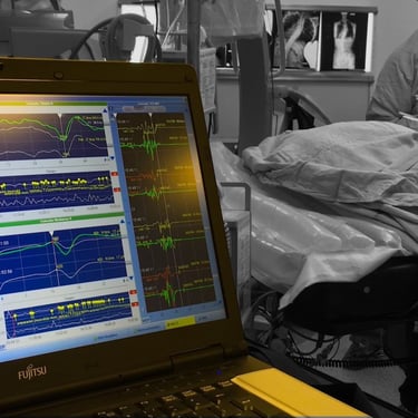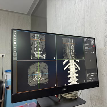 🧠 Fractura vertebral lumbar – Artrodesis con tornillos transpediculares (FTP) canulados y fenestrados, con cementación ósea, asistida con monitoreo neurofisiológico, control radiográfico y neuronavegación.