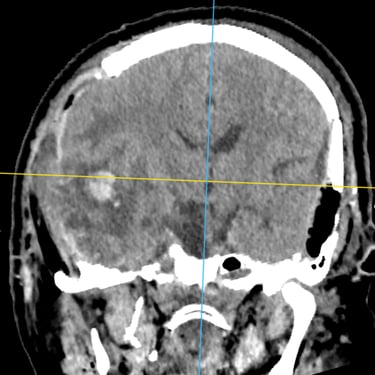 El traumatismo encéfalo craneano (TEC) severo es una emergencia neurológica que puede comprometer rápidamente la vida del paciente. Cuando existe edema cerebral difuso y hematomas asociados, el tratamiento quirúrgico oportuno es fundamental. La craneotomía descompresiva hemisférica derecha permite reducir la presión intracraneal y prevenir daño cerebral secundario, mientras que la craneotomía temporal izquierda con evacuación de hematoma extradural (HED) elimina el efecto de masa local. Este abordaje combinado busca preservar la perfusión cerebral, estabilizar al paciente y mejorar el pronóstico neurológico en situaciones críticas.